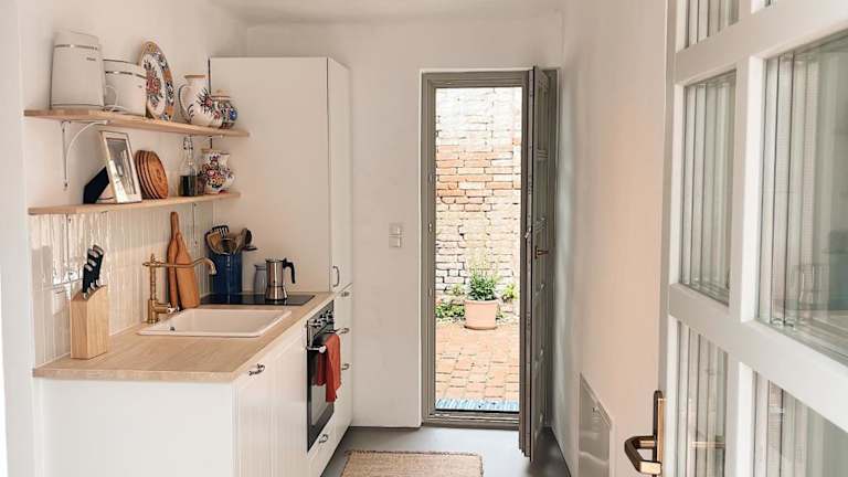 Das Ferienhaus umfasst zwei Schlafzimmer sowie ein Wohnzimmer. Die voll ausgestattete Küche verfügt über einen Kühlschrank und einen Wasserkocher. Zudem sind zwei Badezimmer mit Dusche vorhanden. Handtücher und Bettwäsche werden bereitgestellt.