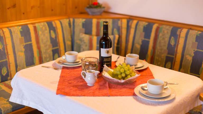 Jede Ferienwohnung ist mit einer kleinen Küche zur Selbstversorgung ausgestattet. Wer sich jedoch gerne bekochen lassen möchte, findet in nur wenigen Gehminuten in der Ortskern ein gutes Angebot an verschiedenen Restaurants.