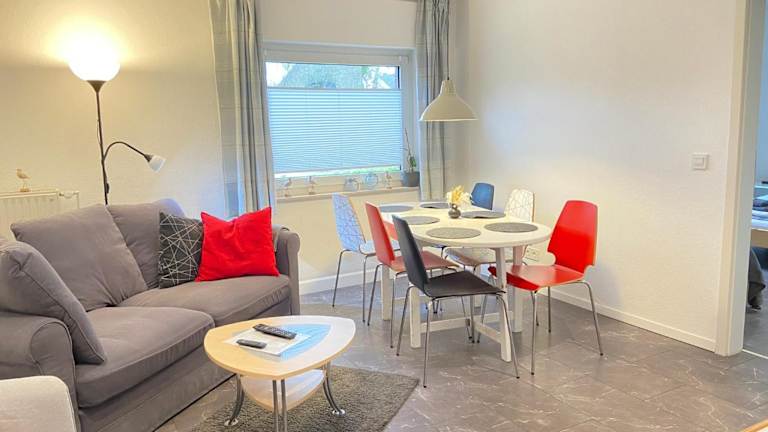 Die Unterkunft besteht aus zwei Schlafzimmern, einem Wohnzimmer sowie einer voll ausgestatteten Küche mit Kühlschrank und Kaffeemaschine. Zudem steht ein Badezimmer mit Dusche und Haartrockner zur Verfügung. Handtücher und Bettwäsche werden bereitgestellt.