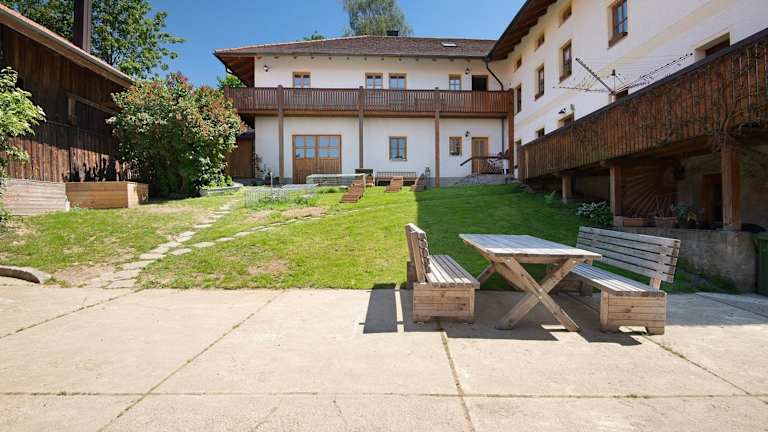 Die Unterkunft Schwarzbauernhof befindet sich in Eschlkam in der Region Bayern, etwa 28 km vom Bahnhof Cham entfernt. Die Umgebung bietet zahlreiche Möglichkeiten für Aktivitäten wie Velofahren und Wandern.