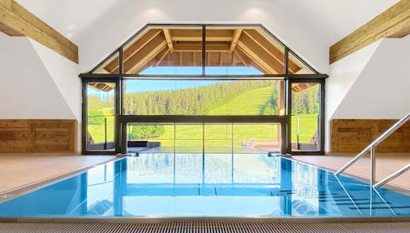 SCHWARZENBACH - Apartments & Rooftop Pool bietet kostenloses Wifi, einen Garten mit Terrasse und Bergblick sowie Zugang zu einem Innenpool und einer Sauna. Zudem steht ein türkisches Dampfbad zur Verfügung und ein Wasserpark ist ebenfalls vor Ort.