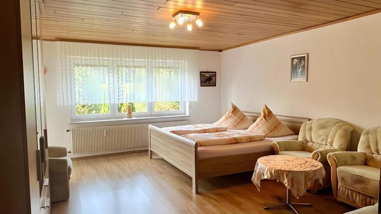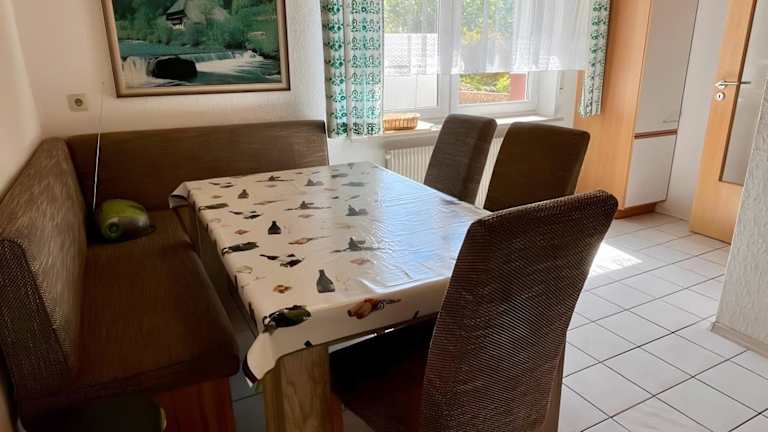 Die Haushaltung bietet ein gemütliches Ambiente mit Platz für bis zu vier Gäste. Die Ferienwohnung ist ausgestattet mit zwei Schlafzimmern, zwei Badezimmern, sowie einer voll ausgestatteten Küche. Ein Balkon mit Bergblick sorgt für eine heimelige Atmosphäre.