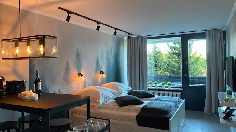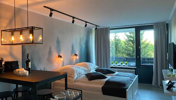 Die Ferienwohnung ist ausgestattet mit 1 Schlafzimmer, 1 Badezimmer, Bettwäsche, Handtüchern, einem Flachbild-TV mit Kabelkanälen, einem Essbereich, einer voll ausgestatteten Küchenzeile und einem Balkon mit Gartenblick.