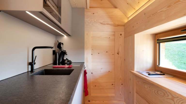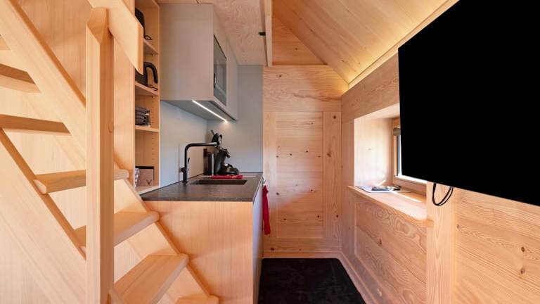 Das Ferienhaus verfügt über ein Schlafzimmer, ein Badezimmer, Bettwäsche, Handtücher, einen TV sowie eine voll ausgestattete Küche. Zudem umfasst es eine Veranda oder einen Patio mit Gartenblick.