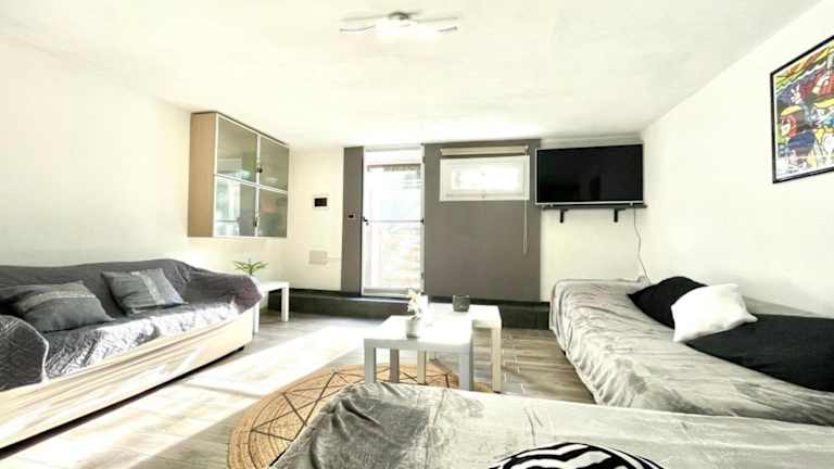 Die Ferienwohnung ist ausgestattet mit Bettwäsche, Handtüchern und bietet eine Terrasse mit Meerblick.
