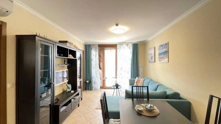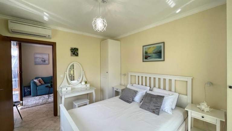 Die Ferienwohnung besteht aus einem Schlafzimmer, einem Wohnzimmer und einer voll ausgestatteten Küche mit Kühlschrank und Kaffeemaschine. Das Badezimmer ist mit Dusche und Haartrockner ausgestattet. Die Zimmer sind klimatisiert und schallisoliert und bieten einen schönen Blick auf das Meer sowie Zugang zum Garten und zum Poolbereich.