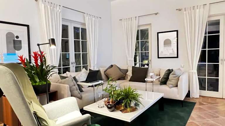Die Villa verfügt über 2 Schlafzimmer, ein Wohnzimmer sowie eine voll ausgestattete Küche mit Kühlschrank und Kaffeemaschine. Es sind 3 Badezimmer vorhanden, die ein Bidet und eine Dusche bieten. Handtücher und Bettwäsche werden bereitgestellt. Klimaanlage sorgt für die nötige Bequemlichkeit.