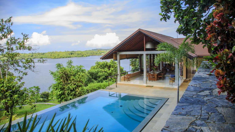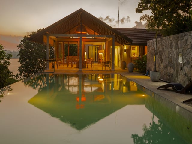 Das Sea Heart House in Koggala bietet Ihnen ein luxuriöses Ferienhaus mit zahlreichen Annehmlichkeiten. Genießen Sie den Infinity-Pool, das Fitnesscenter und den Yoga-Pavillon sowie den atemberaubenden Blick auf den See. Die voll ausgestattete Küche und das komfortable Interieur sorgen für einen erholsamen Aufenthalt.