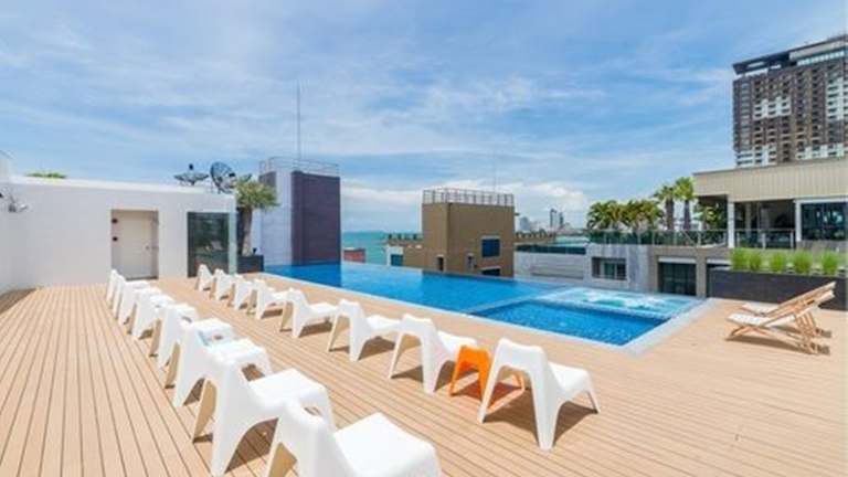 Das Sea Me Spring Tree Hotel befindet sich in Pattaya, nur 1 Gehminute vom Strand entfernt. In der Nähe finden Gäste zahlreiche gastronomische Einrichtungen sowie Einkaufsgelegenheiten im Central Festival Pattaya Beach, das in 5 Minuten zu Fuss erreichbar ist. Die Anbindung an die öffentlichen Verkehrsmittel ist ebenfalls gut, und der Flughafen Bangkok-Suvarnabhumi kann in etwa 1,5 Fahrstunden erreicht werden.