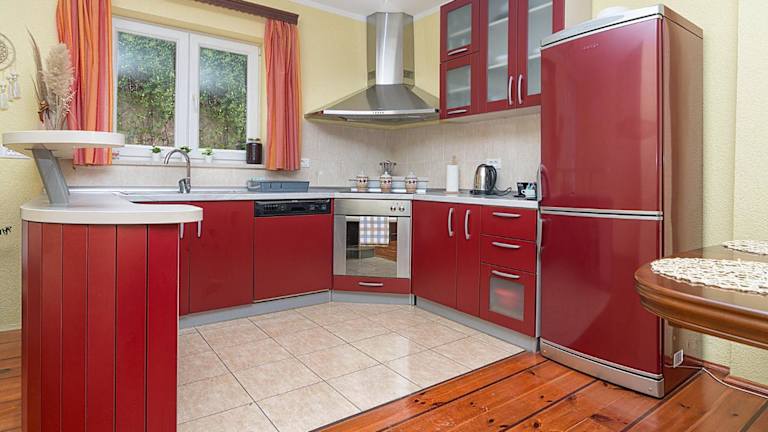 Das Ferienhaus verfügt über zwei Schlafzimmer und ein Wohnzimmer, sowie eine voll ausgestattete Küche, die unter anderem einen Kühlschrank und eine Kaffeemaschine beinhaltet. Ein Badezimmer mit Dusche und kostenlosen Pflegeprodukten ist ebenfalls vorhanden. Handtücher und Bettwäsche werden den Gästen bereitgestellt.