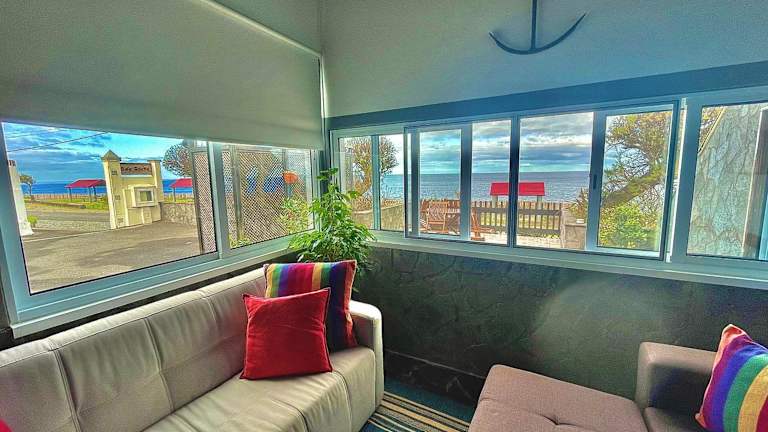 Sea Roots "Sea Zone" bietet Übernachtungsmöglichkeiten mit herrlichem Meerblick. Die Unterkunft umfasst einen Garten, eine Veranda oder Terrasse und einen direkten Zugang zum Strand, wobei sich ein kostenloser Privatparkplatz und WLAN in der Unterkunft befinden. Die Regelungen der Unterkunft umfassen, dass Junggesellen-/Junggesellinnenabschiede oder ähnliche Feiern nicht gestattet sind. Zudem dürfen keine Haustiere mitgebracht werden.
