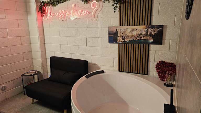 Die Unterkunft umfasst ein klimatisiertes Schlafzimmer sowie ein Badezimmer, das mit einer Dusche, einem Whirlpool und kostenlosen Pflegeprodukten ausgestattet ist. Die Küchenzeile bietet Bequemlichkeiten wie einen Kühlschrank, eine Herdplatte, eine Kaffeemaschine und einen Wasserkocher.