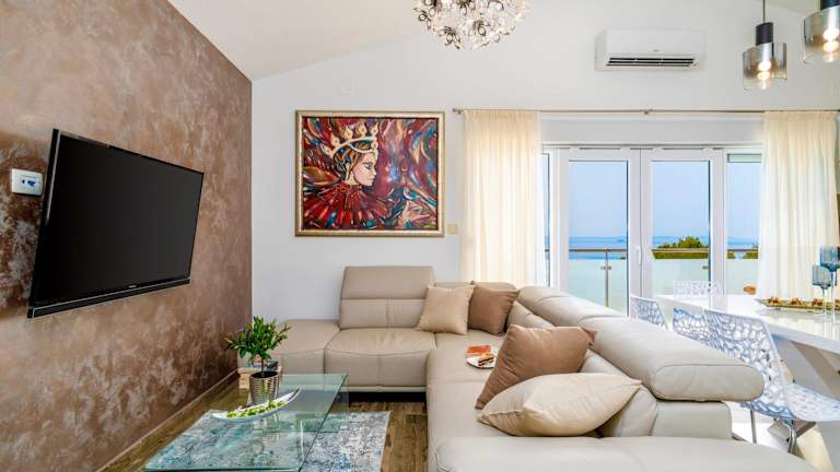 Das Sea Sparkle 2 Luxury Apartment ist eine moderne Ferienwohnung, die Übernachtungsmöglichkeiten mit kostenlosem WLAN, Klimaanlage und einer Terrasse bietet. Die Unterkunft bietet zudem kostenfreien Privatparkplatz und ist ideal für Gäste, die eine entspannte Umgebung suchen. Ein Fahrradverleih kann organisiert werden, und die Unterkunft wird von einem privaten Gastgeber geführt. Besucher sind gebeten, von Feiern wie Junggesellenabschieden abzusehen.