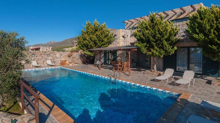 Die Sea-Sunset Views Villa Lefkothea ist eine moderne Villa mit eigenem Außenpool, Garten und Terrasse. Diese Unterkunft bietet gratis WLAN und zeichnet sich durch einen herrlichen Meer- und Bergblick aus.