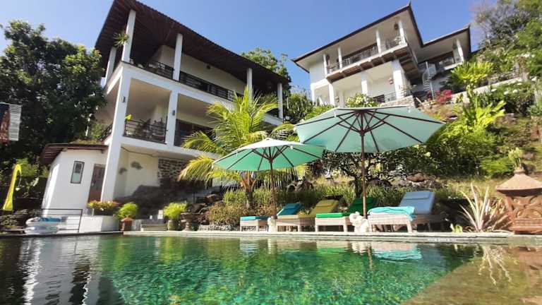 Die Unterkunft Liri Villa - 4 BRs - Ocean, Valley view verfügt über einen eigenen Pool und einen Garten, sowie einen Aussenpool für entspannende Stunden.