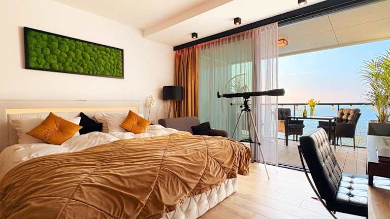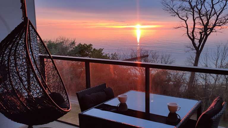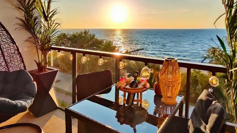 Das Sea View Moss VIP Apartment bietet eine klimatisierte Ferienwohnung mit einem Schlafzimmer und einem Badezimmer. Gäste profitieren von kostenlosem WLAN und einem Privatparkplatz. Zur Ausstattung gehören ein Flachbild-TV mit Satellitenkanälen, ein Essbereich, eine voll ausgestattete Küche und eine Terrasse mit Meerblick. Des Weiteren stehen ein Restaurant und eine Bar zur Verfügung, sowie ein Kinderclub.