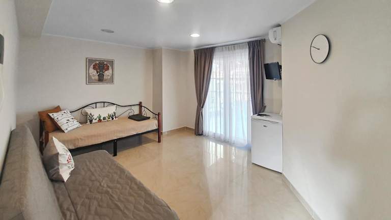 Die Wohnung hat ein Schlafzimmer und ein gemütliches Wohnzimmer mit einem Flachbild-TV mit Satellitenkanälen. Das Badezimmer ist mit einer Dusche ausgestattet. Dabei werden Handtücher und Bettwäsche bereitgestellt. Die Unterkunft bietet Nichtraucherzimmer, sodass eine heimelige Atmosphäre gewährleistet ist.