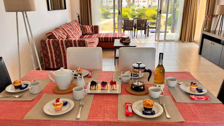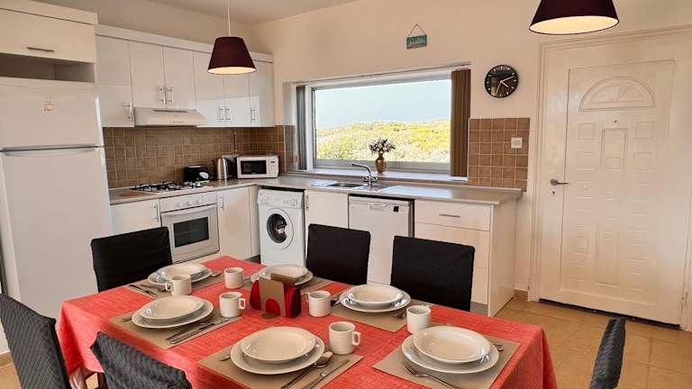 Die Ferienwohnung besteht aus 3 Schlafzimmern, einem Wohnzimmer und einer voll ausgestatteten Küche mit Kühlschrank und Wasserkocher. Zwei Badezimmer, die mit einem Bidet und einer Dusche ausgestattet sind, stehen ebenfalls zur Verfügung. Handtücher und Bettwäsche werden zur Verfügung gestellt.