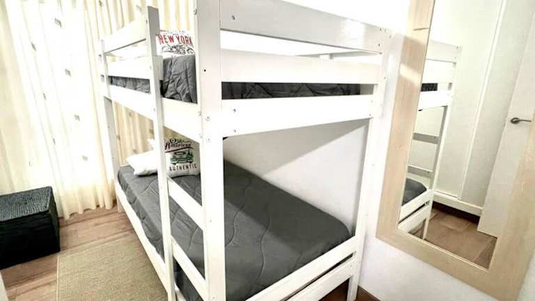 Die Ferienwohnung umfasst zwei Schlafzimmer und ein Badezimmer. Zudem sind Bettwäsche und Handtücher vorhanden. Ein Flachbild-TV sowie eine voll ausgestattete Küche stellen sicher, dass die Gäste alle notwendigen Annehmlichkeiten zur Verfügung haben. Eine Terrasse mit Stadtblick rundet die Ausstattung ab.