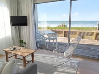 Die Beachside Apartments A und B verfügen über ein separates Schlafzimmer, einen Wohnbereich mit Sofaecke und eine voll ausgestattete Küche, die mit einer Mikrowelle, einem Kochfeld, einem Toaster, einem Wasserkocher, einem Kühlschrank und einer Kaffeemaschine eingerichtet ist. Die gefliesten Badezimmer sind mit einer ebenerdigen Dusche ausgestattet. Beide Apartments sind schallisoliert und bieten Zugang zu einer Terrasse sowie Gartenmöbeln.