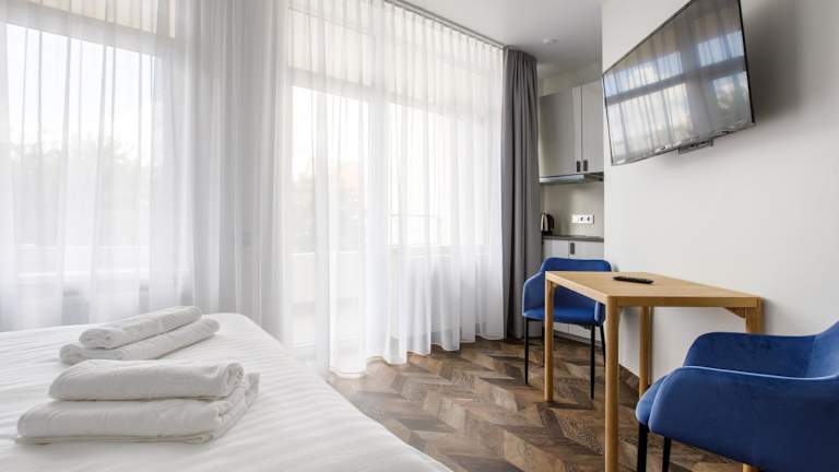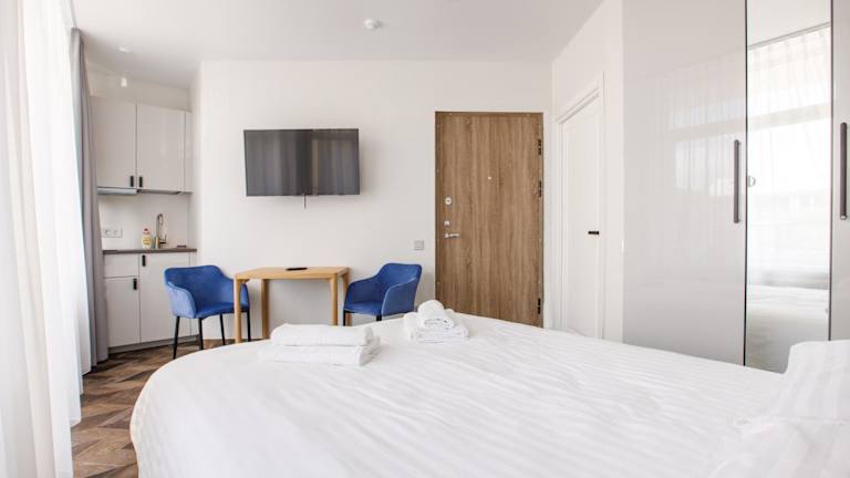Die Zimmer sind mit einem Flachbild-TV, Satellitenkanälen, Kühlschrank, Wasserkocher, Dusche, Haartrockner und Kleiderschrank ausgestattet. Ausgewählte Zimmer verfügen darüber hinaus über eine Küche mit Herdplatte. Jedes Zimmer ist mit einem eigenen Badezimmer und Bettwäsche ausgestattet.