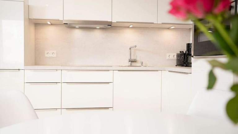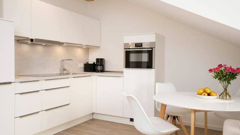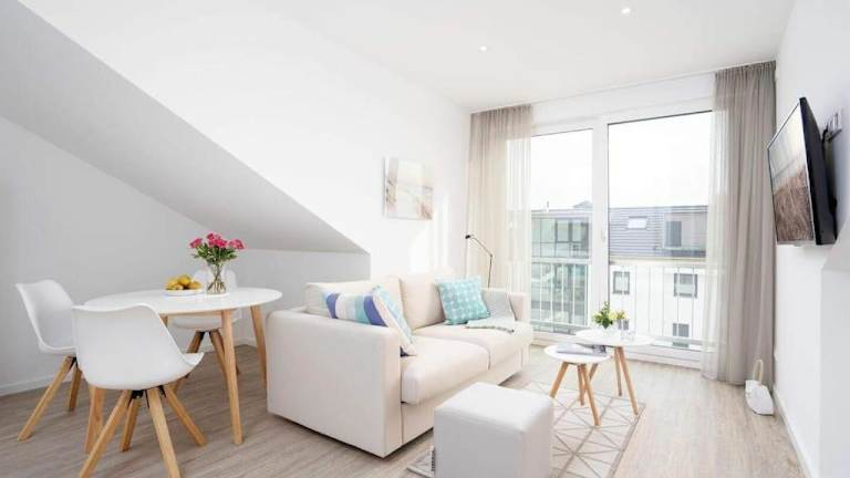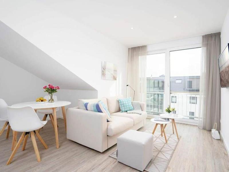 Die Ferienwohnung umfasst ein Schlafzimmer sowie ein Wohnzimmer, das mit einem Flachbild-TV ausgestattet ist. Eine voll ausgestattete Küche mit Geschirrspüler stellt die nötigen Annehmlichkeiten zur Verfügung. Für zusätzlichen Komfort können Handtücher und Bettwäsche gegen Aufpreis bereitgestellt werden.