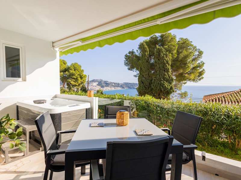 Die Seaside Spa Luxury Flat - Jacuzzi - Sauna - Sea view bietet klimatisierte Übernachtungsmöglichkeiten mit einem eigenen Pool und Meerblick. Die Unterkunft verfügt über einen Balkon sowie einen Garten und lädt zur Entspannung im Wellness-Bereich ein.