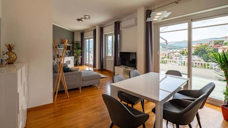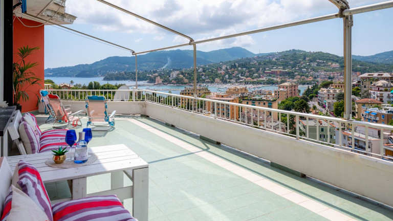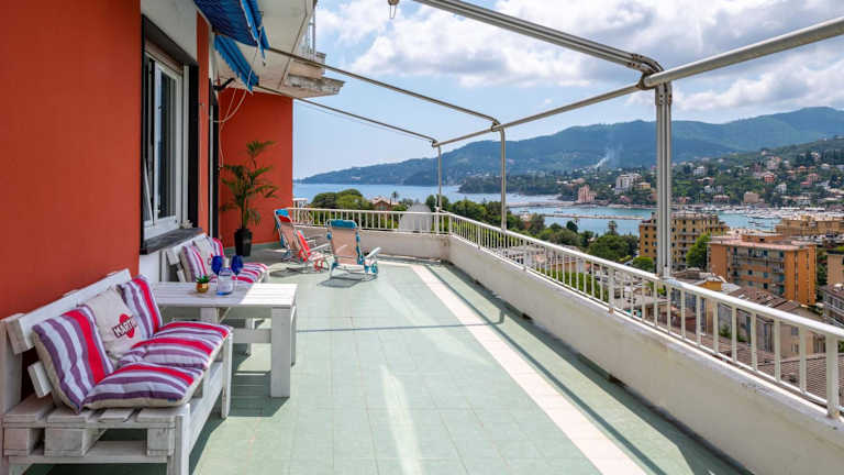 Die Seaview Flat by PortofinoVip AC, Parking, Terrasse bietet eine heimelige Unterkunft mit einem Balkon, wo Gäste den Stadtblick geniessen können. Die Ferienwohnung verfügt über moderne Annehmlichkeiten und ist grosszügig geschnitten.