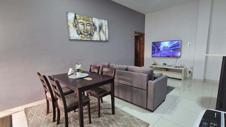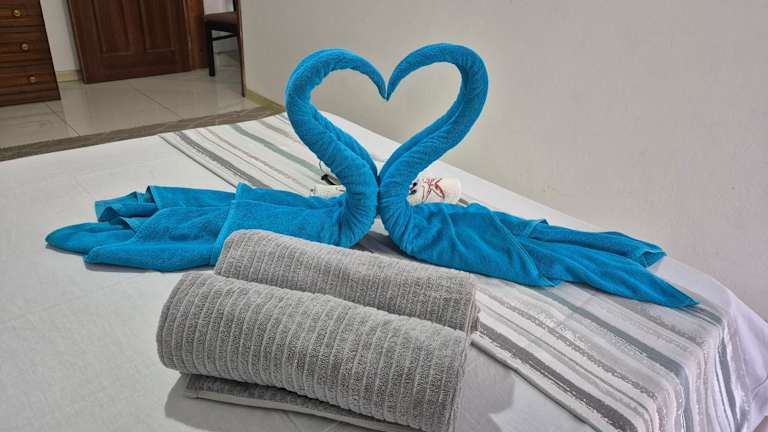 Die Ferienwohnung beinhaltet 2 Schlafzimmer, 2 Badezimmer, Bettwäsche, Handtücher, einen Flachbild-TV mit Satellitenkanälen, einen Essbereich sowie eine voll ausgestattete Küche. Ein Balkon mit Stadtblick rundet die Ausstattung ab.