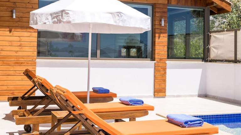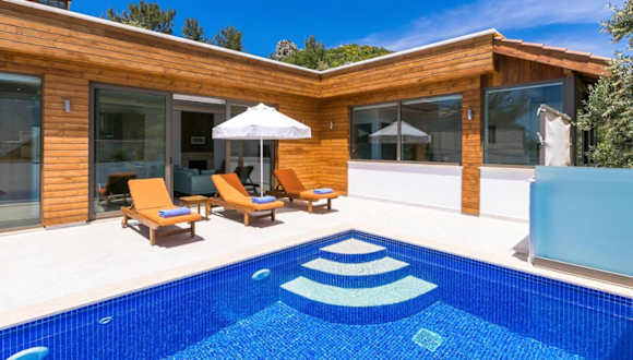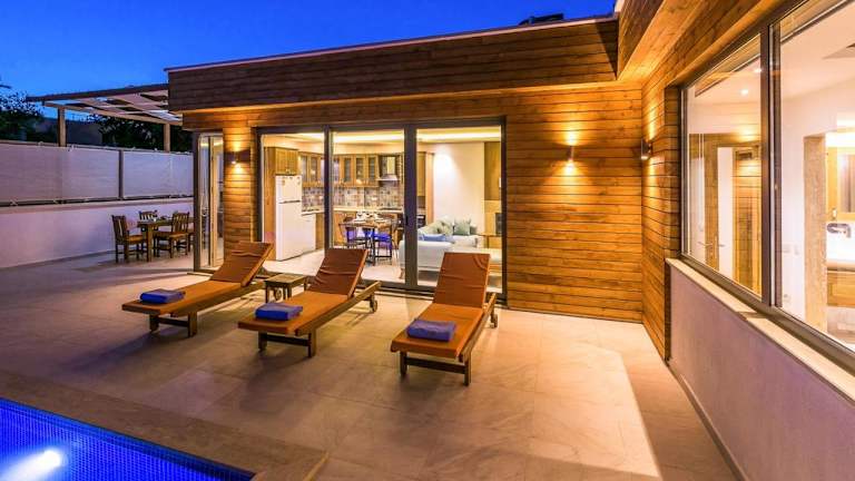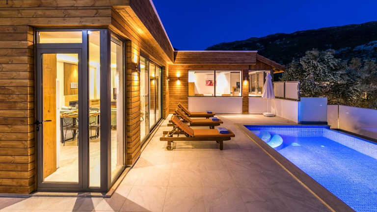 Die Villa liegt in der ruhigen Umgebung von Kaş und bietet eine abgeschiedene Atmosphäre, ideal für einen romantischen Aufenthalt. Die wunderschöne Natur und die Nähe zum Meer sorgen für eine entspannende Kulisse. Die Sehenswürdigkeiten wie die Lycian-Gräber und der Saklikent National Park sind in der Nähe.