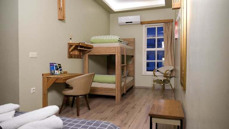 Die Zimmer sind ausgestattet mit einem Schreibtisch, einem eigenen Badezimmer mit Dusche und Haartrockner, sowie Stadtblick. Die Zimmer verfügen über Bettwäsche und Handtücher.