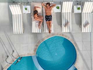 pa Center A unique, luxury spa, designed in the style of ancient Greece. Enjoy a memorable experience in a harmoniously designed space with delightful wall paintings and a luxurious ambiance. Spa services are Free to use from our guests: (during opening hours, with appointment ) Heated indoor pool Infrared Sauna Therapy Jacuzzi with whirlpool Hammam Gym Massage, body and facial therapies, manicure, pedicure (services with extra cost) Spa services come at extra charge of 5 euro for our guests from 01-01-2021. Till 31-12-2020 services are free to use. Outdoor visitors can use, sauna, jacuzzi, hammam, indoor pool and gym (during opening hours, with appointment ) - €10/person/day. Package for 1 and 5 monthes are available. OPENING TIME 12:30 to 20:30 every day (Monday closed) No children under 6 year old are allowed.