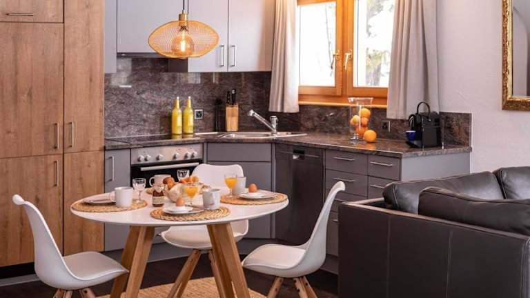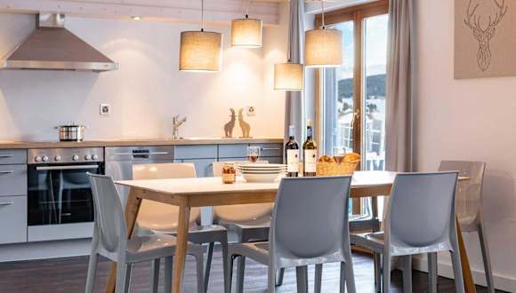 Die Unterkunft ist ausgestattet mit einem Flachbild-TV sowie einem eigenen Badezimmer mit Dusche und Haartrockner. Die Küche verfügt über einen Kühlschrank, Geschirrspüler und Ofen. Einige Wohneinheiten bieten eine Terrasse oder einen Balkon mit Blick auf die Berge oder den See.