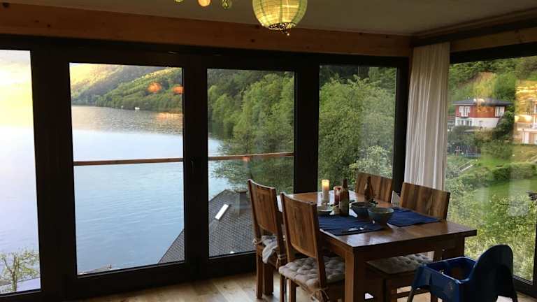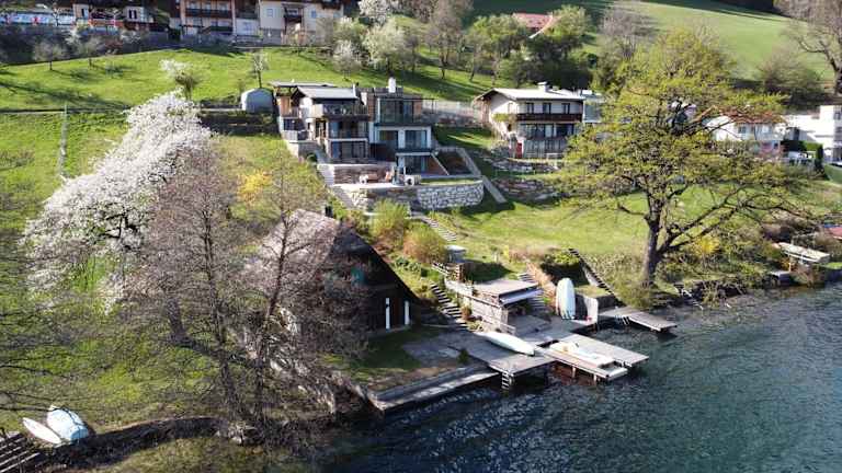 Das Seehaus Laggerhof bietet eine heimelige Atmosphäre mit einem Garten, einem eigenen Strandbereich und einer Terrasse. Gäste können sich über kostenloses Wifi, kostenlose Parkiermöglichkeiten sowie einen Abstellraum für Skier freuen.