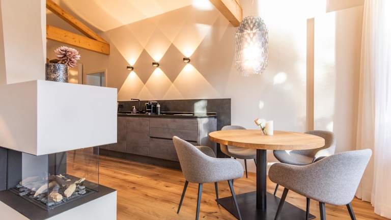 Die Unterkunft bietet moderne Ferienwohnungen mit Balkon und Bergblick. Jedes Zimmer ist mit einem Sitzbereich, einem Satelliten Flachbild-TV und einer voll ausgestatteten Küche mit Kühlschrank, Geschirrspüler, Ofen, Mikrowelle und Herdplatte ausgestattet. Ein eigenes Badezimmer mit Dusche und kostenlosen Pflegeprodukten steht ebenfalls zur Verfügung. Des Weiteren sind eine Kaffeemaschine und ein Wasserkocher vorhanden.