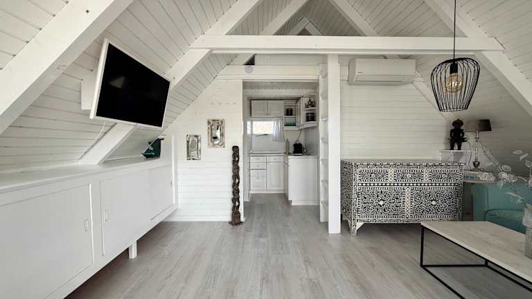 Das Ferienhaus mit Klimaanlage bietet 1 Schlafzimmer, ein Wohnzimmer und eine voll ausgestattete Küche mit Kühlschrank und Kaffeemaschine. Es umfasst zudem ein Badezimmer mit Dusche und kostenlosen Pflegeprodukten. Handtücher und Bettwäsche werden bereitgestellt.