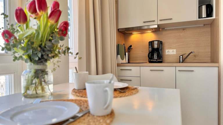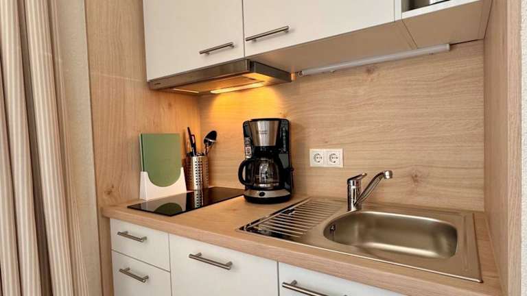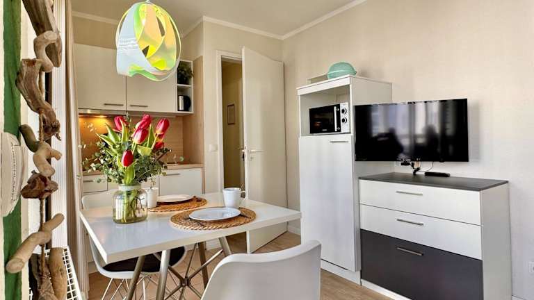 Die Ferienwohnung verfügt über eine Küchenzeile und ist damit gut ausgestattet für Selbstversorger. Weitere Annehmlichkeiten wie kostenloses WLAN sind in der gesamten Unterkunft verfügbar.