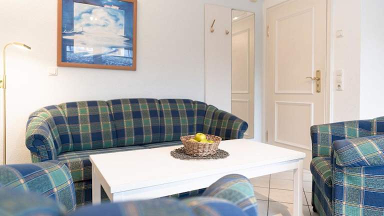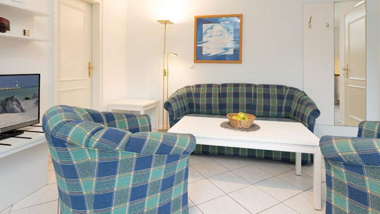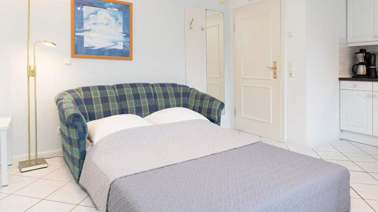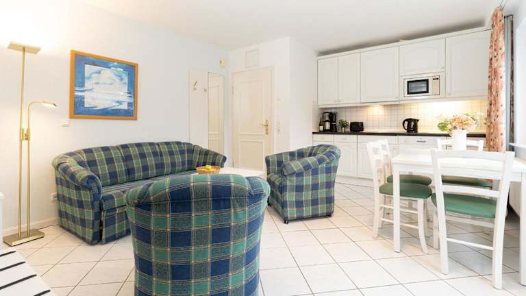 Die Ferienwohnung verfügt über ein Schlafzimmer, eine gut ausgestattete Küche mit Kühlschrank und Mikrowelle, ein Wohnzimmer sowie einen Fernseher. Es bieten sich verschiedene Annehmlichkeiten für einen angenehmen Aufenthalt.