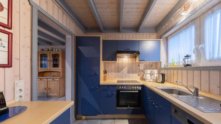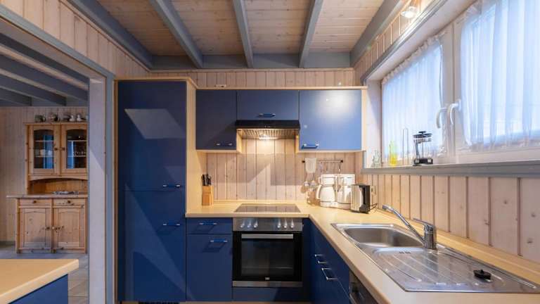 Die voll ausgestattete Küche ermöglicht es den Gästen, selbst zu kochen. Sie sind mit einem Kühlschrank, Geschirrspüler, Waschmaschine, Ofen und Mikrowelle ausgestattet.