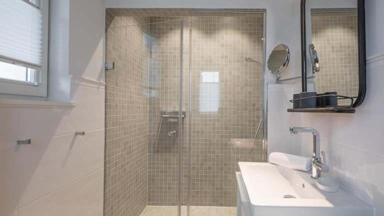 Die Ferienwohnung umfasst 3 Schlafzimmer und ist mit einem TV sowie einer voll ausgestatteten Küche ausgestattet, die einen Kühlschrank, Geschirrspüler, Waschmaschine, Ofen und Herdplatte beinhaltet.