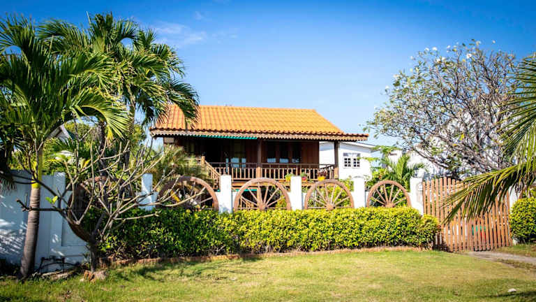 Das SeeSea Thai Holzhaus am Strand in Prachuap Khiri Khan bietet eine idyllische Unterkunft mit einer entspannten Atmosphäre und einer günstigen Lage in der Nähe des Ao Manao Strandes. Mit einem schönen Garten, kostenfreien Parkplätzen und einer Gemeinschaftsküche ist dieses Hotel ideal für Reisende, die eine authentische Erfahrung suchen. Genießen Sie den Meerblick von Ihrem eigenen Balkon und erkunden Sie die Umgebung mit dem Fahrrad.
