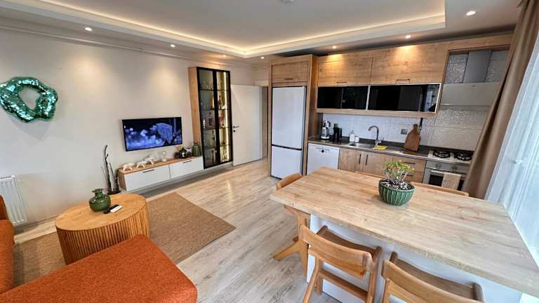 Die Ferienwohnung Şehrin kalbinde benzersiz ev bietet eine heimelige Atmosphäre und beeindruckt durch den Blick auf den Garten. Sie beinhaltet einen Balkon, eine voll ausgestattete Küche sowie einen angenehmen Wohnbereich. Zudem gibt es eine Klimaanlage und ein Badezimmer mit Dusche und Haartrockner. Handtücher und Bettwäsche werden bereitgestellt. Die Unterkunft wird von einem privaten Gastgeber geführt und hat spezifische Regeln für Feiern.