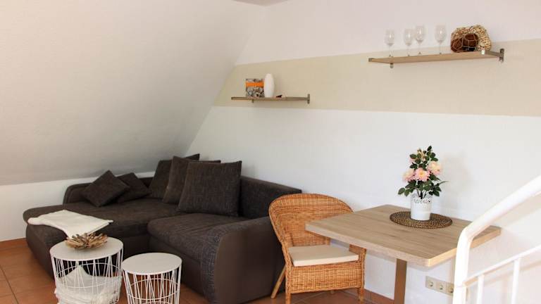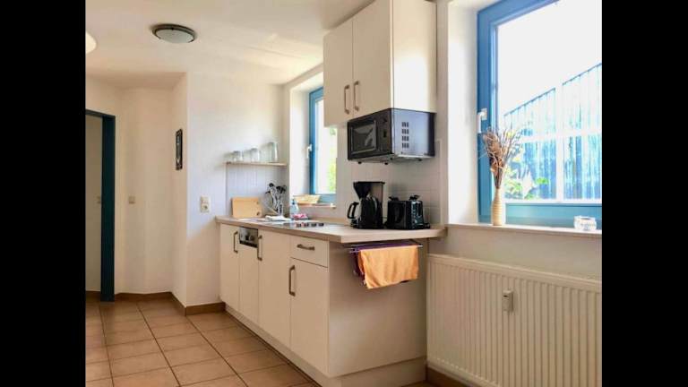 Die Ferienwohnung besteht aus einem Schlafzimmer, einem Wohnzimmer sowie einer voll ausgestatteten Küche mit Kühlschrank und Kaffeemaschine. Ein Badezimmer mit Dusche ist ebenfalls vorhanden. Für zusätzlichen Komfort können Handtücher und Bettwäsche gegen Aufpreis bereitgestellt werden.