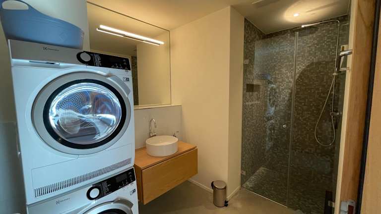 Das Apartment umfasst zwei gemütliche Schlafzimmer, eine Küche mit Kühlschrank und Geschirrspüler, einen Flachbild-TV sowie einen Sitzbereich. Es gibt zwei Badezimmer, ausgestattet mit einer Dusche. Handtücher und Bettwäsche werden zur Verfügung gestellt.