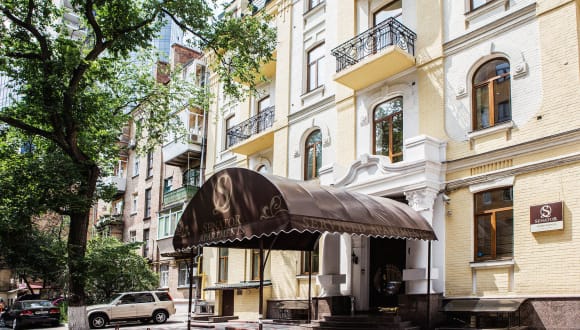 Die Anlage befindet sich im ruhigen Zentrum von Kiew. In wenigen Minuten erreicht man den Botanischen Garten, die Chreschtschatyk Strasse, erlesene Restaurants, Einkaufsgelegenheiten, Nachtklubs, die Oper sowie die Wladimirkathedrale. Die Sophienkathedrale und die Sankt-Andreas-Kirche sind ca. 2 km entfernt. Die nächste U-Bahnstation ist nur 50 m und der Hauptbahnhof 1 km entfernt.