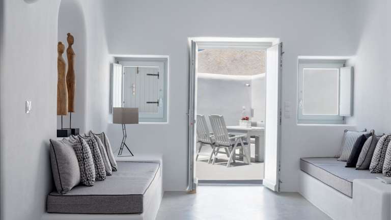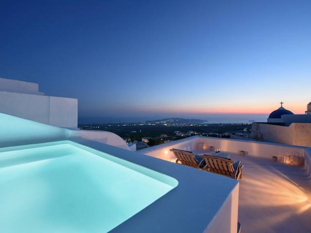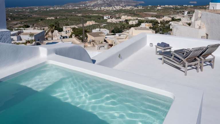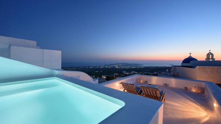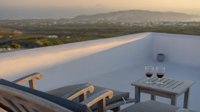 Die Sensation Villa befindet sich im malerischen Ort Pyrgos auf der griechischen Insel Santorin. Sie liegt ungefähr 5 km vom Flughafen Santorin entfernt und bietet einen spektakulären Meerblick und eine ruhige Umgebung.