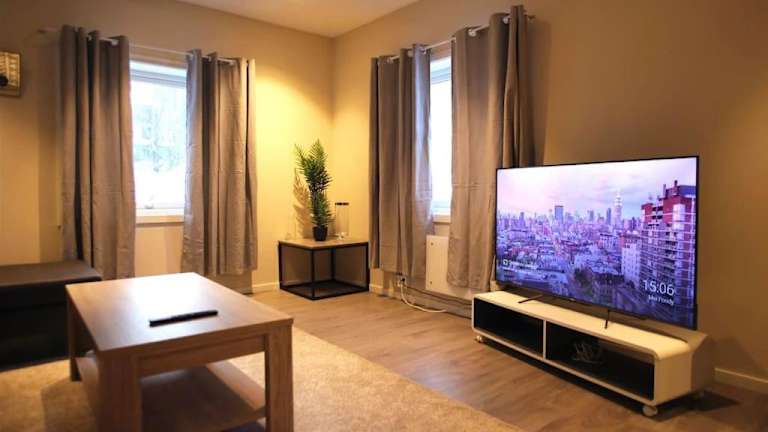 Die Ferienwohnung ist ausgestattet mit drei Schlafzimmern, einer vollständig eingerichteten Küche mit Kühlschrank und Geschirrspüler sowie einem Flachbild-TV und einem Sitzbereich. Das Badezimmer verfügt über eine Dusche und Handtücher sowie Bettwäsche werden zur Verfügung gestellt.