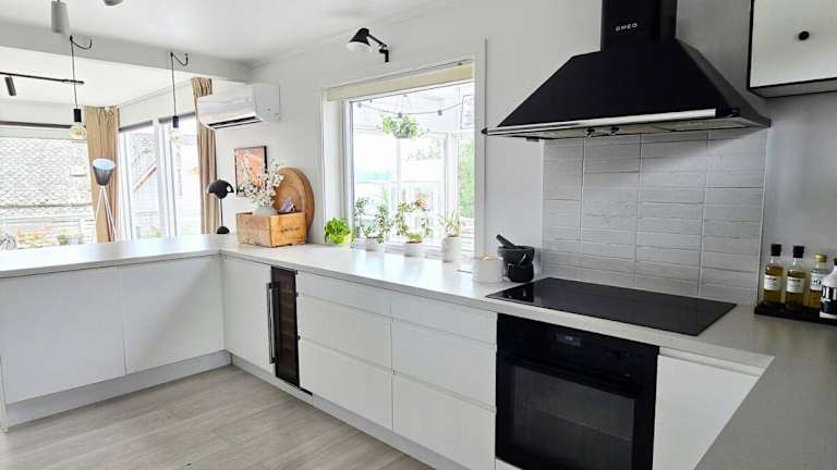 Sentrumsidyll ved fjord og fjell ist eine geräumige Villa mit kostenlosem WLAN und einer Terrasse. Sie verfügt über 4 Schlafzimmer, ein Wohnzimmer, einen Flachbild-TV und eine gut ausgestattete Küche mit Kühlschrank und Geschirrspüler. Die Unterkunft besitzt zudem einen Garten und einen kostenlosen Privatparkplatz.