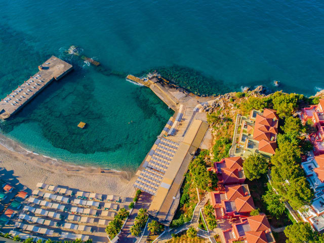 Das Hotel Senza Garden Holiday Club befindet sich in Alanya-Konakli in erster Strandlage, am Hang und eingebettet inmitten der Natur sowie angrenzend an den Wald. Die ruhige Lage am Ortsrand bietet einen angenehmen Rückzugsort. Der Flughafen Antalya Airport liegt ca. 115 km entfernt, was einer Fahrzeit von etwa 2,3 Stunden entspricht. Die nächstgelegene Shoppingmall ist ca. 3 km entfernt und das Stadtzentrum von Alanya ist ca. 8 km entfernt.