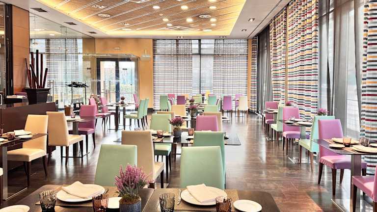 Im Hotel stehen verschiedene gastronomische Einrichtungen zur Verfügung, darunter ein Frühstückssaal, ein Café und eine Bar. Die Gäste können ein kontinentales Frühstück in Buffetform geniessen. Zum Mittag- und Abendessen werden Gerichte à la carte angeboten, und spezielle Menükreationen sowie diätgerechte und Kindermenüs können auf Anfrage zubereitet werden.